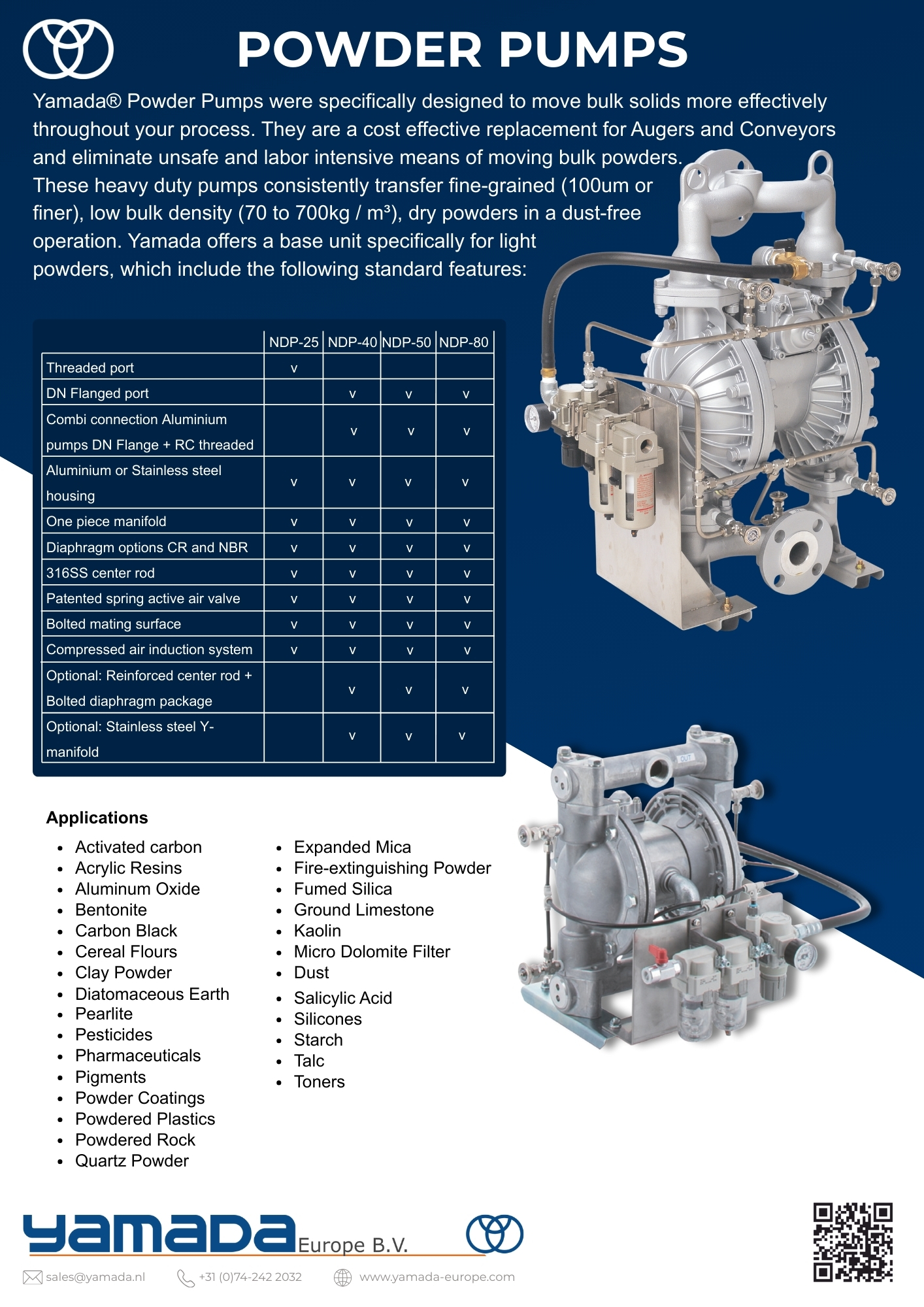 At Yamada Europe B.V., we are committed to providing exceptional customer service. Our team of experts is always available to help answer any questions you may have about our industrial pumps and machinery. We understand that every customer has unique needs which is why we offer tailored solutions to meet your specific requirements. Your specific requirements and applications are very important to us. Based on our wishes we provide you with the best suited pump for your specific situation. Both on- and offside support are available by our highly trained local Sales & Service Center we provide you with the best available support in the market. Contact us today to learn more about how we can help you find the perfect pump solution for your needs.
